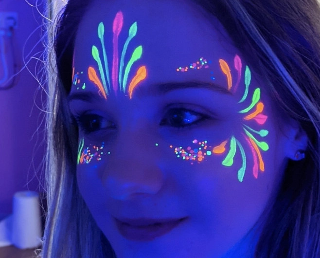 Chcete něco opravdu neobvyklého? Nabízíme speciální SFX (special effects) malování pomocí UV a neonových barev, které září pod černým světlem. Vytváříme výrazné futuristické nebo fantasy motivy, které ožijí ve tmě – ideální pro večerní a noční události. Hodí se například na: